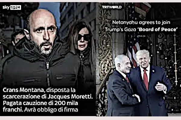 Un amico di Jacques Moretti responsabile della strage di Crans-Montana paga la cauzione per farlo tornare a casa; un amico di Netanyahu indagato per il genocidio di Gaza paga 1 miliardo di dollari e lo fa entrare nel Board of Peace di Trump