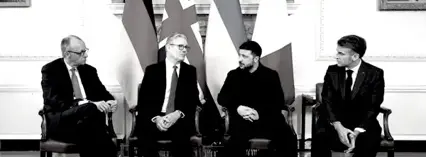 8 dicembre 2025 - Zelensky incontra Starmer, Merz e Macron per discutere il piano di resa dell'Ucraina presentato / imposto da Putin Trump. I 3 leader europei garantiscono a Zelensky il proprio sostegno, sono le tre ruote dell'Europa che prova a mettersi in movimento. Manca la quarta ruota, l'Italia che Giorgia Meloni ha ridotto a supino vassallo di Trump, nonostante i tentativi del generoso ministro Crosetto di controbilanciare i putiniani della Lega.