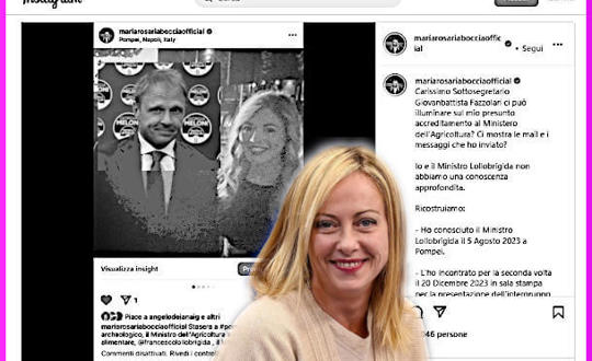 Dopo aver costretto alle dimissioni il bersaglio più facile, il facilone ministro della Cultura Gennaro Sangiuliano, Maria Rosaria Boccia ha iniziato a puntare la Meloni Arianna, sorella e braccio destro di Giorgia Meloni, nonché compagna fino a qualche settimana fa, prima di mollarlo per una improvvisa crisi sentimentale, del ministro dell'Agricoltura Francesco Lollobrigida, e l'Agricoltura in Italia come tutti sanno conta molto più della Cultura.