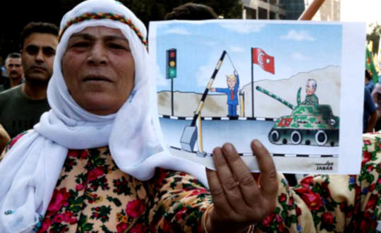 Era dall'epoca della guerra in Vietnam e di Nixon che un Presidente americano non veniva percepito con tanto odio e disprezzo in tanta parte dell'opinione pubblica mondiale. L'ex Generale dei Marines John Allen: 'There is blood on Trump's hands for abandoning our Kurdish allies' ____________________________ Nel Rojava, la regione al confine tra Siria e Turchia a prevalenza etnia curda, si sta svolgendo un massacro che evoca gli orrori di altre guerre, passate e presenti, come se non ce ne fosse gia' abbastanza di sangue di innocenti sparso tra i vari continenti e soprattutto nel medio oriente. Ma la guerra infame scatenata da Erdogan contro i Curdi, in una Siria gia' massacrata dall'esercito del macellaio Assad con l'aiuto dei russi e degli iraniani, sta suscitando in tutto il Mondo una reazione imprevista che le cancellerie imbalsamate o conniventi stentano a capire. L'opinione pubblica mondiale considera i curdi come i veri artefici della vittoria contro lo Stato Islamico, sia in Iraq che in Siria. Una vittoria resa possibile dalla copertura militare, economica e politica che gli Stati Uniti hanno fornito ai miliziani curdi, in modo certamente interessato ma in ogni caso controbilanciando l'inerzia nei confronti di Assad. La vittoria sull'Isis aveva garantito ai curdi anche il giusto diritto di protezione contro i disegni vendicativi di Erdogan, una protezione data dalla presenza di truppe e basi americane lungo il confine con la Turchia. Anche i sassi sapevano che nel momento in cui fosse venuta meno la presenza americana, le milizie curde sarebbero state sterminate dai turchi e dai mercenari filo-turchi. Il genio sado-nazista di Erdogan ha colto al balzo l'occasione per raggiungere due obbiettivi: eliminare i curdi dal Rojava e trasferire tre milioni di rifugiati siriani detenuti nei campi di concentramento dalla Turchia alla Siria. Nella telefonata in cui ha convinto Trump a ritirare le truppe dalla Siria, Erdogan gli aveva pospettato un'operazione rapida, facile e conveniente: i curdi li spostiamo un po' verso ovest, con le buone o con le cattive, e nel Rojava si insediano i rifugiati siriani, che cosi' diventano un problema di Assad e non di Ankara. Tutto senza spargere troppo sangue, promessa di Erdogan a cui Trump ha immediatamente aderito. Nel giro di pochi giorni, Trump ha dovuto prima rimangiarsi l'annuncio del ritiro degli USA dalla Siria e poi riconfermarlo nel momento in cui la mattanza turca e' diventata evidente in tutto il mondo, attraverso immagini e video che documentavano le atrocita' dei turchi contro le popolazioni curde. Tutto il Mondo ha iniziato a chiamare Trump TRADITORE, e ad associarlo in tutti i modi al tiranno Erdogan nelle immagini che mostrano i corpi straziati dei bambini, delle donne schiacciate dai blindati, dei civili fucilati ai bordi delle strade. La denuncia dell'orrore e delle violenze, accomunate alla parola tradimento dilagano in tutte le manifestazioni di protesta nelle principali citta' del mondo, persino la FoxNews mostra imbarazzo, ma non Donald Trump che riannuncia il ritiro completo dei soldati americani mentre Putin annusa l'aria e ordina all'esercito siriano (quello del macellaio Assad) di andare a difendere i curdi di Kobane ! Sulla pelle del popolo curdo, sta accadendo qualcosa di strano che potrebbe cambiare in profondita' anche gli schieramenti geopolitici. Era dall'epoca della guerra in Vietnam e di Nixon che un Presidente americano non veniva percepito con tanto odio e disprezzo in tanta parte dell'opinione pubblica mondiale. Un presidente rappresenta la sua nazione, e il TRADIMENTO di Trump coinvolge l'America e gli americani. Cosa aspettano per liberarsene con l'impeachment ? DAMASCUS, SYRIA (2:35 P.M.) � The Syrian Democratic Forces (SDF) might go on an alliance with Syrian President Bashar Assad in order to repel the Turkish military in northern Syria. �We are considering a partnership with Syrian President Bashar al-Assad, with the aim of fighting Turkish forces�, the Commander-in-Chief of the Syrian Democratic Armed Forces, Mazlum Abdi, said. In an interview with NBC News, Abdi stated that keeping an eye on ISIS prisoners is no longer a priority for SDF as most fighters guarding the prisons and camps have been deployed to the borders to fend off the Turkish invasion. �Monitoring ISIS prisoners imprisoned in Syria is a �second priority� now that the United States has paved the way for a Turkish attack that is likely to target our forces along the border,� Abdi added. Of the 12000 ISIS militants detained in SDF prisons and camps, only 2000 of them are foreign mercenaries while the rest are Syrian and Iraqi nationals. This comes a few hours after US President Donald Trump announced withdrawal of US forces from northern Syria as Turkish military prepares full invasion. �Frankly, this makes us disappointed. The decision harms Syrian trust in the United States and the credibility of the United States�, Abdi commented. The Turkish Army has made all necessary preparations for their upcoming invasion of northern Syria, aiming at �eradicating Kurdish terrorist groups which pose a threat to Turkey�s national security�. In response, The Kurdish-led Syrian Democratic Forces (SDF) have allegedly deployed a massive force in northern Al-Raqqa this weekend after reports about a new Turkish military operation east of the Euphrates.