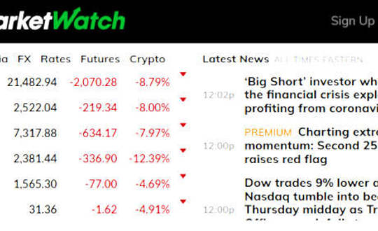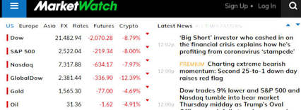 Aggiornamento: Christine Lagarde della BCE pronuncia la frase-simbolo del nuovo corso dei banchieri nell'era del coronavirus: "non siamo qui per chiudere gli spread". Il messaggio e' rivolto soprattutto all'Italia e al vero costo del debito pubblico rappresentato dallo spread tra i BTP e i Bund che negli ultimi si e' impennato oltre i 200 punti. In termini pratici significa che la BCE non fara' acquisti di BTP per mantenere lo spread entro un limite compatibile con i vincoli europei, ma potrebbe far decidere al mercato - quindi alla speculazione internazionale - quale sia lo spread piu' realistico ... Se il debitore e' molto ammalato, come nel caso dell'Italia, cosa fa un creditore molto esposto? Vende tutto per cercare di rientrare dei crediti, prima che il malato muoia di coronavirus ... Christine Lagarde ammette che il vaccino antispread non esiste, e quindi si salvi chi puo' ... Se Mattarella non riesce a far dimettere Ignazio Visco dalla Banca d'Italia, figuriamoci se puo' convincere la Lagarde della BCE a comprare BTP. Il valico del Brennero verso Francoforte e' chiuso per coronavirus. Aggiornamento: la Federal Reserve ha annunciato che stampera' 1,5 trilioni di dollari (1500 miliardi) per sostenere il sistema finanziario americano contro il rischio pandemia. Dopo una parziale ripresa, i mercati azionari americani hanno continuato a perdere quasi l'8% che si somma ai crolli dei giorni scorsi. L'algoritmo del coronavirus e' piu' potente degli algoritmi di Wall Street? Donald Trump potrebbe essere stato contagiato durante un incontro con Bolsonaro... tutti in quarantena alla Casa Bianca ! ____________________ La pandemia di COVID-19 sta provocando una tempesta di intensita' inattesa su tutti i mercati finanziari e su tutti gli asset dalle azioni al petrolio alle materie prime agli immobili. I banchieri centrali non riescono ad arginare il crollo, dopo aver consentito alla bolla speculativa di gonfiarsi oltre ogni ragionevole limite. Wall Street e tutte le piazze finanziarie del mondo sono in "bear market", la definizione tecnica di un calo generale di oltre il 20% dall'ultimo picco massimo registrato a gennaio. L'unica strategia finanziaria che prevale e' vendere tutto, anche in perdita, e restare chiusi nella liquidita' almeno per qualche mese. La Federal Reserve americana ha ridotto i tassi e iniettato miliardi di dollari ma le Borse sono scese. Prima e dopo gli americani tutte le altre grandi banche centrali di Cina, Giappone, Canada, Europa hanno fatto piu' o meno la stessa cosa ma senza ottenere risultati anzi, come nel caso della BCE a guida Lagarde, accelerando il sell-off sui mercati internazionali. 1 - Si sta verificando quello che molti avevano evidenziato e temuto. Aver speso per tanti anni troppe munizioni, anche quando se ne poteva fare a meno, per soddisfare l'appetito degli speculatori affamati di rialzi borsistici e liquidita' a costo zero, ha fatto si che quando e' arrivato il momento di fronteggiare una vera crisi economica ci si e' accorti di essere rimasti senza armi e senza munizioni. La BCE di Draghi ha portato i tassi sottozero e li ha lasciati a quel livello anche quando avrebbe potuto rialzarli. Ora servirebbe una riduzione del 3% ma non si puo' perche' sono gia' a -0,5. Cosi' come aver lasciato tanta liquidita' nel sistema ha favorito solo la finanza speculativa che ha utilizzato quel denaro presto in prestito a tassi ridicoli in gran parte per comprare titoli e strumenti da cui si sono ricavati guadagni maggiori che non ad investirli in fabbriche e infrastrutture. 2 - La pandemia di coronavirus sta inceppando l'intera filiera produttiva mondiale da un lato e dall'altro sta facendo crollare i consumi di beni e servizi. Il trasporto aereo e' l'esempio piu' lampante: ogni nazione e' costretta a chiudere il traffico nel tentativo di limitare le possibilita' di contagio. A questo si aggiunge che la gente ha paura di viaggiare oppure non ha piu' motivo di spostarsi: convegni, manifestazioni commerciali, eventi sportivi, turistici e culturali, sono tutti annullati o rinviati. Le Olimpiadi di Tokyo sono in forse, i mega-porti sono saturi di milioni di container di merci che nessuno vuole spostare, centinaia di miliardi di dollari sono improvvisamente scomparsi dall'economia reale. 3 - Se ci fosse la certezza che tra qualche settimana tutto questo pandemonio finisce e si torna, anche lentamente, alla normalita', i mercati finanziari avrebbero fatto quello che in genere si fa in questi casi : buy the deep, approfittare cioe' dei cali di borsa per comprare ai minimi e guadagnare nel futuro. Ma questa certezza non c'e', nonostante i ripetuti inviti di Donal Trump, e anzi si sta facendo strada l'idea che questa crisi sara' lunga e penosa, perche' la vastita' del contagio e' enorme. La Merkel in pubblico ha stimato che piu' della meta' dei tedeschi possono essere contagiati dal coronavirus e queste stime sono applicate da molti anche su scala mondiale. Si tratta una quota enorme di popolazione, concentrata nei paesi piu' ricchi, che per i prossimi sei-dodici mesi avra' come unica preoccupazione quella sopravvivere, azzerando i consumi che non siano strettamente necessari alla sopravvivenza. E' come se l'intera economia globale debba improvvisamente fare i conti con un eccesso di produzione del 60%, fabbriche, trasporti, servizi, tutto si riduce di questa quota con una recessione del PIL di portata storica, superiore alla crisi del '29. Nessuna Banca Centrale, da sola o insieme a tutte le altre, puo' annullare o alleviare questo rischio. L'unico intervento possibile e' stampare denaro per pagare i bisogni di centinaia di milioni di persone che resteranno ferme, per quarantena o per crisi, e avranno necessita' di un "reddito di cittadinanza" per sopravvivere. In parte sara' fatto dai governi aumentando il deficit statale, ma anche questo non risolleva gli animi della finanza mondiale, abituata a considerare i cittadini come "consumatori da mungere" e da indebitare, non da 