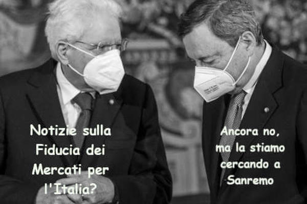C'è Salvini che ha ripreso la Propaganda Live a tutte le ore, i CinqueStelle che alla spicciolata si sciolgono, il PD che si divide su Barbara D'Urso, come può fare Draghi a risolvere tutto in poco tempo con questa banda di politicanti? Ci vuole pazienza, un pò di tempo, poi il Migliore saprà metterli in riga e per Covid-19 non ci sarà più scampo.