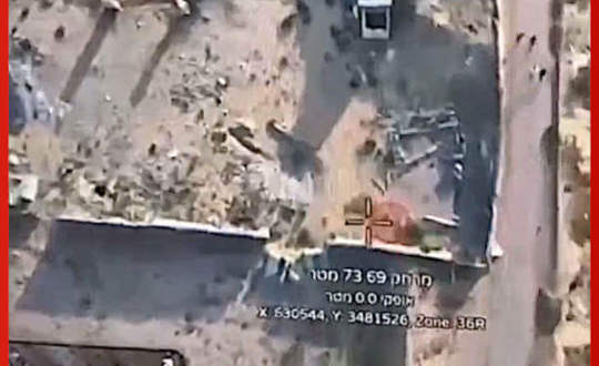 Aerial footage obtained depicts Israeli soldiers dropping grenades from a drone, targeting a group of civilians fleeing Netzarim last September. One person is visibly struck and collapses