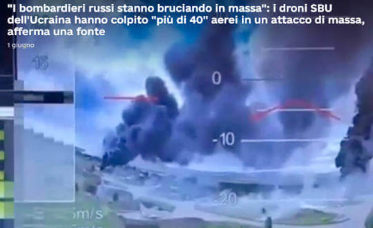 1 giugno - Decine di bombardieri russi sarebbero stati distrutti da un attacco con droni ucraini.