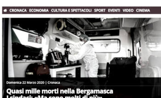Il titolo dell'intervista di Repubblica e' : Coronavirus, il medico ammalato: �Io intubato e incosciente, ora sono tornato alla vita e a tutti dico: resistete" Il titolo che a mio avviso sarebbe piu' corretto e realistico e': "Ecco come si puo' morire di Coronavirus" da Repubblica: Angelo Vavassori, rianimatore a Bergamo, racconta i giorni in cui gli mancava l'ossigeno, perdeva olfatto, vista, fino alla ripresa. E ora spera di tornare al lavoro lunedi'. di Giampaolo Visetti "Quando non sono piu' riuscito a respirare, ho temuto di non rivedere mia moglie e i nostri quattro figli. Fino a quell�istante avevo curato gli altri attaccati dal coronavirus. Ho visto pazienti morire, conosco la sua aggressivita'. Cosi' ho pensato che magari il momento del congedo era venuto anche per me�. Angelo Vavassori, 53 anni di Treviolo, rianimatore nell�ospedale di Bergamo, racconta dal suo letto di terapia sub-intensiva come si precipita nell�incubo Covid-19 e come si torna alla vita. �In poche ore � dice a Repubblica � sono passato da 15 a 40 respiri al minuto. Non mi entrava piu' aria nei polmoni e ho quasi perso la vista. Se sono qui lo devo ai miei colleghi medici, eroi non retorici. Nei momenti piu' duri mi hanno fatto sentire tranquillo. La mia storia, in ore nere, puo' aiutare molti a non lasciarsi andare�. Come ha capito di essere stato contagiato? �Dal 22 febbraio ho curato i primi infettati. Dal 28 il mio reparto di rianimazione e' stato riservato a loro. Sabato 29 mi e' salita un po� di febbre, ma sono giorni difficili e anche domenica ho finito il turno a mezzanotte. Lunedi' mattina stavo bene, verso sera avevo gia' 38,9 di febbre�. Come ha reagito? �Il paracetamolo era inutile. Ho fatto due conti: se il Covid-19 mi aveva attaccato, non poteva averlo fatto quando, protetto, curavo gli altri infettati. e' successo prima: a contatto con i miei pazienti chirurgici. La terapia intensiva scoppiava, mi sono chiuso in una stanza di casa�. La sua famiglia non ha temuto il contagio? �Per due giorni mi hanno lasciato il cibo davanti alla porta chiusa. Lo ritiravo con guanti e mascherina, poi disinfettavo tutto. Comunicavamo al telefono. Non e' bastato: mia moglie e il figlio piu' grande di 18 anni sono rimasti contagiati. I gemelli di 14 anni e la bambina di 11, per ora no�. Quando e' precipitata la situazione? �Mercoledi' 4 marzo mi hanno fatto il tampone, giovedi' e' stata confermata la positivita'. La febbre restava attorno 39. La sera ho cominciato a respirare a fatica. In pochi minuti ho perso olfatto e gusto, ci vedevo sempre meno. Per la carenza di ossigeno sono saliti anche mal di testa e dissenteria�. Chi l�ha portata in ospedale? �Ho telefonato io, ma non c�era posto. Sapevo di non poter resistere a lungo. Respiravo, ma nei polmoni non entrava piu' ossigeno. Alle 23 mi ha chiamato un collega per dirmi che si era liberato un letto. La radiografia ha confermato che la polmonite era scoppiata�. Come e' stato curato? �La dispnea toglie totalmente il fiato. Mi hanno infilato subito nel casco Peep a pressione di fine respirazione positiva. Ho provato a farcela senza essere sedato e intubato. Si perde comunque conoscenza, non e' stato facile�. ... Quanto tempo ha impiegato per tornare alla vita? �Per un paio di giorni sono stato assente. Avverti nel sonno che medici e macchine ti infondono ossigeno e ti idratano. Il tempo si concentra in un istante: ora so che e' questa accelerazione che cancella passato e presente, il confine tra la vita e la morte�. Come e' stato il risveglio? �Pensavo di essere a casa, appena assopito. Invece nel letto accanto al mio c�era un paziente che avevo curato io per il Covid-19. Come ai bambini, ogni cosa appare nuova e straordinaria. Questo dramma ci insegna il valore di ogni piccola cosa�. Ora dove si trova? �Sono in gastroenterologia, riconvertita al Covid-19. Respiro con una mascherina che rilascia ossigeno al 70%, circa 12 litri al minuto. Accanto a me ci sono i miei malati: sono sorpresi quando capiscono che mi sono trasformato in uno di loro�. Cosa vuole dire a chi sta lottando, come lei, per sopravvivere? �Di non farsi paralizzare dalla paura. Bisogna restare tranquilli e affidarsi ai medici. Ti tirano fuori, ogni polmonite regredisce. La mia preoccupazione pero' e' un�altra�. Quale? �Se penso ai medici e agli infermieri del nostro Paese mi commuovo. Siamo allo stremo e sappiamo che la battaglia resta lunga. Chiedo a tutti di aiutarci restando in casa. e' cosi' che ci si sta vicino. Io poi da lunedi' spero di ritornare al lavoro�. Perche' questa intervista che avrebbe dovuto generare speranza e ragionevole ottimismo in realta' e' preoccupante e angosciosa? Perche' il medico rivela una dinamica di salvezza nel suo caso fortunata, ma che calata nella realta' di altre centinaia di migliaia di persone non avrebbe dato luogo al suo lieto fine ma all'esatto contrario, la morte sicura. Il medico Angelo Vavassori aveva : - le cognizioni per autodiagnosticarsi in tempo, senza farsi illudere che e' solo un'influenza. - la fortuna e le relazioni per ottenere un posto in terapia intensiva, una condizione difficile nei giorni scorsi, impossibile nel prossimo futuro quando il dilagare esponenziale dell'epidemia sommergera' ttta la struttura sanitaria nazionale. Angelo Vavassori non e' la testimonianza angosciosa che si puo' sopravvivere al contagio, bensi' il contrario. Nella nuova normalita' del coronavirus, tra la diagnosi e la morte non ci saranno molte possibilita' di essere curati, anzi non ci sara' nemmeno piu' il tempo per la diagnosi, perche' mancano i tamponi per fare i test: da Repubblica , Coronavirus, ecco perche' la letalita' in Italia e' cosi' alta "Fra i dati dell�epidemia, sono i decessi a colpire di piu'. La letalita' e' molto piu' alta in Italia rispetto alla Cina: 6,7% per noi e 2,4% per Pechino. .. Fare meno tamponi � una necessita', in questa fase cosi' dura � non vuol dire solo di