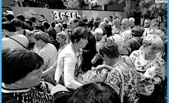 Comincia a singhiozzare: "Siamo in via Nevsky, 5 - nell'amministrazione - registrata come uscita da Sudzha. Ma non hanno detto nulla su cosa dovremmo fare, su cosa contare. L'hanno semplicemente scritto, e basta. Siamo andati qui e abbiamo pensato che almeno ci avrebbero dato dei vestiti, ma non avevamo niente, proprio niente. Mia figlia è entrata alla KSU, domani ha una riunione del primo anno - non ha nemmeno niente da indossare lì. E ora il mio telefono si è esaurito e ho perso mia figlia in questa folla..." La donna non ce la fa più e inizia a piangere.
