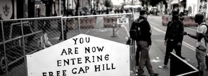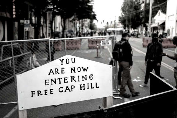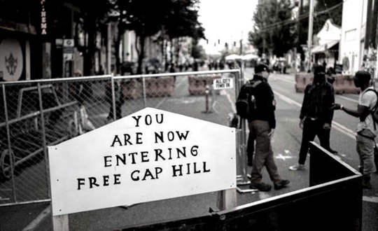 Il distretto e' chiuso da tre giorni, dopo le manifestazioni per la morte di George Floyd, e la polizia non vi puo' entrare. Tutta la zona attorno al Distretto e' stata occupata dai manifestanti, che l'hanno recintata e l'hanno chiamata "CHAZ", Capitol Hill Autonomous Zone, capitale di una zona autonoma, un lembo di citta' autogestito, una sorta di mini Comune di Parigi nel paese di Wall Street. Gli Occupanti sono giovani di vari movimenti locali e di Black Lives Matter. Hanno presentato una lista di richieste in 30 punti, "le richieste delle voci nere collettive di Free Capitol Hill al governo di Seattle, Washington" indirizzata al sindaco e al governatore. Al primo punto il defunding della Polizia e il divieto di usare armi e violenze contro chi manifesta per i diritti umani, e poi rivendicazioni economiche e sociali a favore dei piu' disagiati, l'accesso libero ai college, lo stanziamento di fondi per le associazioni culturali, il sostegno alle famiglie per pagare l'affitto. Incredibile pensare che da tre giorni i giovani di Seattle tengono in scacco la politica tradizionale, oltre che le forze di Polizia. Donald Trump ha iniziato a twittare minacce contro tutti, a chiedere di smantellare la CHAZ con l'esercito, definendo l'occupazione un atto di "terrorismo domestico" da gestire con la forza, mentre la sindaca di Seattle Jenny Durkan ha chiesto alla polizia di rimanersene in disparte, in attesa di una soluzione politica e pacifica, e a Trump di rinchiudersi nel suo bunker.