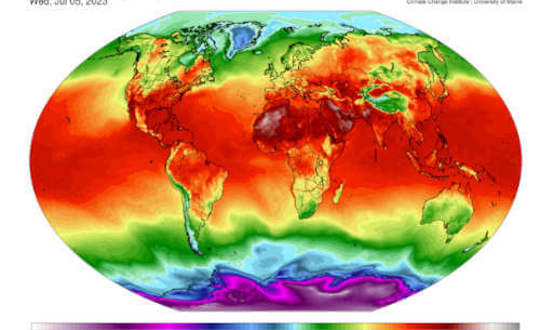 Secondo il Climate Reanalyzer dell'Università del Maine, un sistema che utilizza dati satellitari e simulazioni al computer per misurare le condizioni del mondo, il 5 luglio 2023 la temperatura media globale è stata di 17,18º Celsius (62,9º Fahrenheit). E' stato eguagliato il record stabilito il giorno precedente di 17,18º Celsius (62,9º Fahrenheit), ed è arrivato dopo un precedente record di 17,01º.