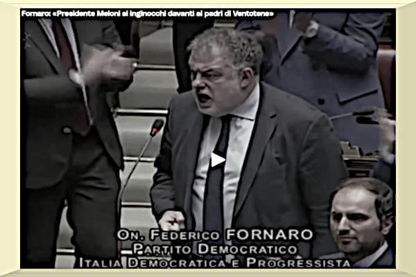 Federico Fornaro, deputato PD, grida 3 volte "vergogna" a Giorgia Meloni con un'impeto e un tono che scuote l'aula di Montecitorio, attraversa il Pantheon, fa vibrare le mura del Quirinale e grazie a Youtube entra nelle case degli italiani, di destra e di sinistra.