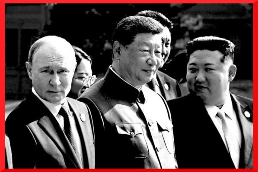 Xi Jinping sfida l'opinione pubblica mondiale facendosi immortalare assieme a due simboli del male, il dittatore russo Vladimir Putin e il dittatore coreano Kim Jing-un. Pochi ormai chiamano Xi Jinping dittatore.