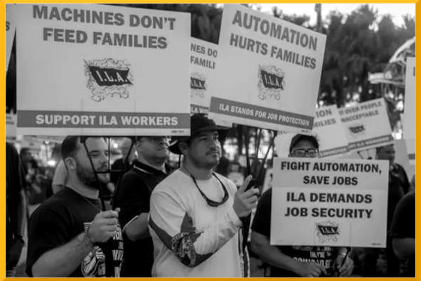 I 45000 lavoratori portuali sindacalizzati della costa orientale, dal Maine al Texas, sono entrati in sciopero bloccando tutte le attività di carico e scarico delle merci di qualsiasi genere. Migliaia di container restano fermi a bordo delle navi o sui moli, creando le premesse per un disastro economico senza precedenti, se non si troverà un accordo entro pochi giorni (cosa che sembra molto difficile)