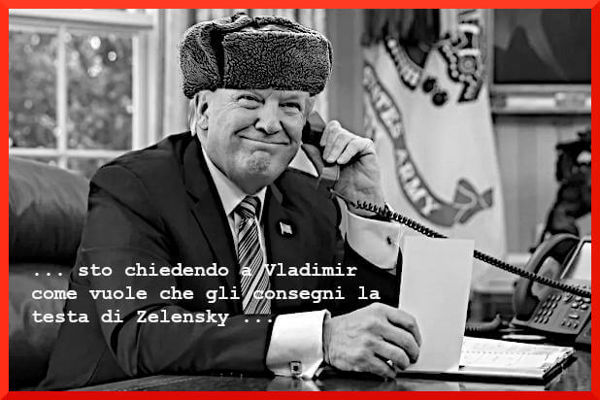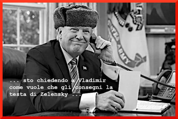 - Il tradimento plateale e cinico di Trump consente a Putin di eliminare Zelensky e portare a termine l'invasione dell'Ucraina.