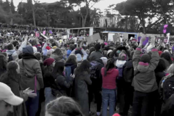 "Insieme siam partite, insieme torneremo, non una di meno" .