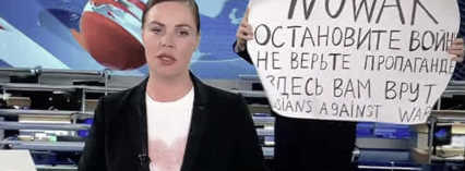 Sui media russi la notizia è stata riportata ma è vietato mostrare il cartello di Marina Ovsyannikova altrimenti si rischia la galera fino a 15 anni.