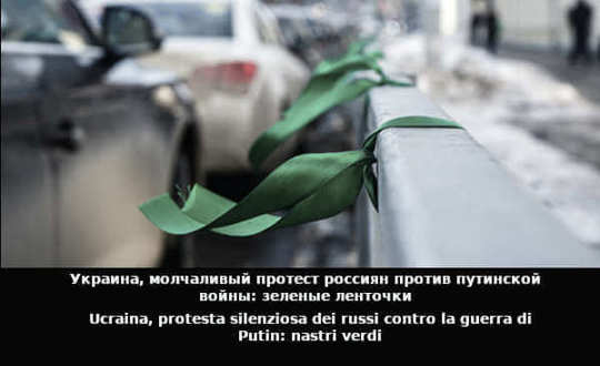 Ucraina, protesta silenziosa dei russi contro la guerra di Putin: nastri verdi