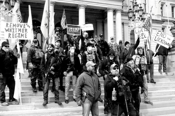 Immagini delle proteste contro il lockdown negli Stati Uniti, tra fucili automatici, poverta' strumentalizzata e avidita' interessata.
