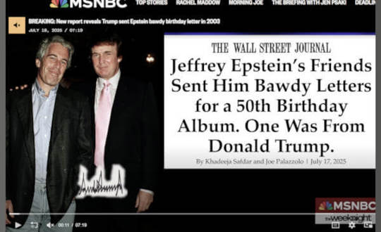 19 luglio - con il suo abituale stile mafioso Donald Trump contrattacca dopo le rivelazioni del WSJ sul caso Epstein.