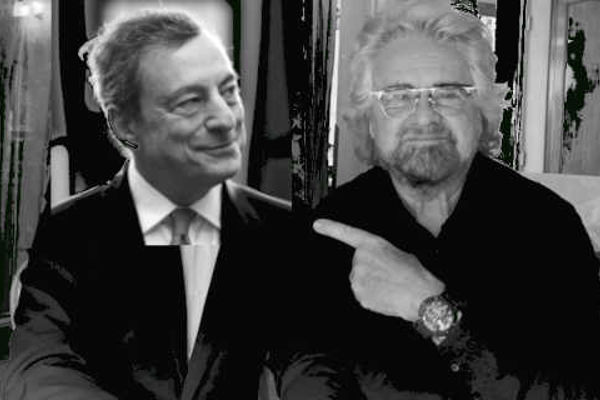 Un saluto caloroso, un atteggiamento entusiasta, come quello manifestato da Grillo dopo l'incontro con Draghi "evviva, è un grillino, è d'accordo con noi su tutto, ci ha fatto i complimenti".