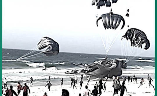 Improvvisamente, dopo che tutto lasciava pensare che il peggio stesse per arrivare, dopo la fine dei colloqui tra Hamas, mediatori arabi e Israele per arrivare ad un cessate il fuoco e al rilascio di altri ostaggi detenuti, improvvisamente il cibo inizia a cadere dal cielo.
