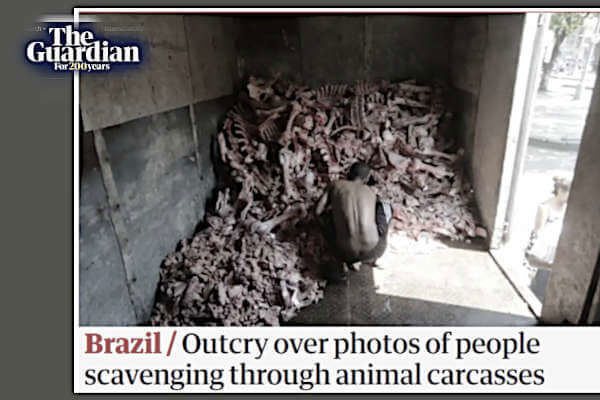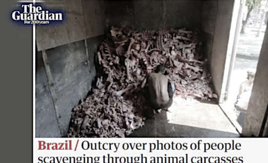 L'immagine stridente tra l'ostentazione di potere economico e criminale rivelato da #PandoraPapers e la povertà mondiale ce la fornisce un'inchiesta fotografica di Domingos Peixoto pubblicata dal giornale EXTRA che documenta la consuetudine dei poveri brasiliani ad "accaparrarsi" le carcasse degli animali macellati, in cerca di resti di carne ancora attaccata alle ossa.