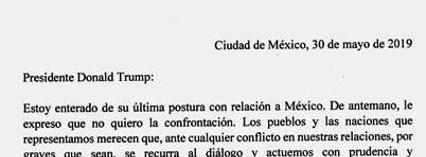 La lettera del Presidente messicano Andre's Manuel Lopez Obrador - detto AMLO - in risposta alla decisione di Donald Trump di applicare dazi doganali del 5% alle merci che il paese centroamericano esporta negli Stati Uniti come rappresaglia al transito di immigrati lungo il confine, e' un esempio di visione diplomatica piu' unica che rara nel panorama attuale, dominato dal verbalismo violento e irriverente in cui Trump primeggia. Dubito che il biscazziere americano possa comprendere lo spirito e i contenuti della lettera, anzi .... PRESIDENZA DELLA REPUBBLICA DEL MESSICO Citta' del Messico, 30 maggio 2019 Presidente Donald Trump, Sono venuto a conoscenza della sua ultima decisione che riguarda il Messico. Innanzitutto, ti informo che non voglio lo scontro. I popoli e le nazioni che rappresentiamo meritano di sapere che di fronte a qualsiasi conflitto nelle nostre relazioni, per quanto grave, ricorreremo al dialogo e agiremo con prudenza e responsabilita'. Il miglior presidente del Messico, Benito Juarez, ha mantenuto ottimi rapporti con il Presidente Repubblicano Abraham Lincoln. In seguito, durante il periodo dell'espropriazione petrolifera, il presidente democratico Franklin D. Roosevelt comprese le ragioni profonde che avevano portato il presidente patriottico Lazaro Cardenas ad agire a favore della nostra sovranita'. A proposito, il presidente Roosevelt e' stato un gigante delle liberta'. Prima di tutti proclamo' i quattro diritti fondamentali dell'uomo: il diritto alla liberta' di parola; il diritto alla liberta' di religione; il diritto di vivere liberi dalla paura; e il diritto di vivere liberi dalla miseria. In questo pensiero mettiamo la nostra politica sulla questione dell'immigrazione. Gli esseri umani non abbandonano i loro villaggi per piacere ma per necessita'. Ecco perche', fin dall'inizio del mio governo, ho proposto di optare per la cooperazione per lo sviluppo e di aiutare i paesi dell'America centrale con investimenti produttivi per creare posti di lavoro e risolvere questo doloroso problema in profondita'. Sapete anche che stiamo adempiendo alla nostra responsabilita' di evitare, per quanto possibile e senza violare i diritti umani, il passaggio attraverso il nostro paese. Giova ricordare che, in breve tempo, i messicani non avranno bisogno di andare negli Stati Uniti e che la migrazione sara' facoltativa, non forzata. Questo perche' stiamo combattendo la corruzione, il principale problema del Messico, come mai era stato fatto! E, in questo modo, il nostro Paese diventera' una istituzione con una dimensione sociale. I nostri compatrioti saranno in grado di lavorare e di essere felici dove sono nati, dove sono i loro parenti, i loro costumi e le loro culture. Presidente Trump: i problemi sociali non sono risolti con le tariffe doganali o misure coercitive. Come trasformare la notte nell'alba di un paese di fraternita' , per i migranti del mondo che vivono nei ghetti, dove il diritto alla giustizia viene stigmatizzato, maltrattato, perseguitato, espulso e cancellato a quelli che cercano con ogni sforzo e lavorano per vivere liberi dalla miseria? La Statua della Liberta' non e' un simbolo vuoto. Con il dovuto rispetto, sebbene abbia il diritto sovrano di esprimerlo, lo slogan "Stati Uniti prima" e' un errore perche' fino alla fine dei tempi, anche oltre i confini nazionali, prevalgono la giustizia e la fraternita' universale. In particolare, presidente cittadino: propongo di approfondire il dialogo, di cercare alternative al problema dell'immigrazione e, per favore, ricorda che non mi manca il coraggio, non sono un vigliacco o un timido ma agisco in base ai principi: credo nella politica che tra l'altro e' stata inventata per evitare lo scontro e la guerra. Non credo nella Legge del taglione, nel "dente per dente" o nell'occhio per occhio perche', se andiamo a quelli, saremmo tutti ciechi o con un occhio solo. Credo che come uomini di stato e rappresentanti delle nostre Nazioni, siamo costretti a cercare soluzioni pacifiche alle polemiche e a mettere in pratica, da sempre, il bellissimo ideale della non violenza. Infine, Vi propongo di istruire i vostri funzionari, se non ci sono altri ostacoli, di associarsi ai rappresentanti del nostro governo, guidati dal Segretario degli Esteri del Messico, che da domani si sara' a Washington per raggiungere un accordo a beneficio delle due nazioni. iNiente con la forza, tutto per la ragione e il diritto! Mexico tariffs will deal a blow to Trump's reelection chances