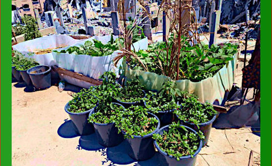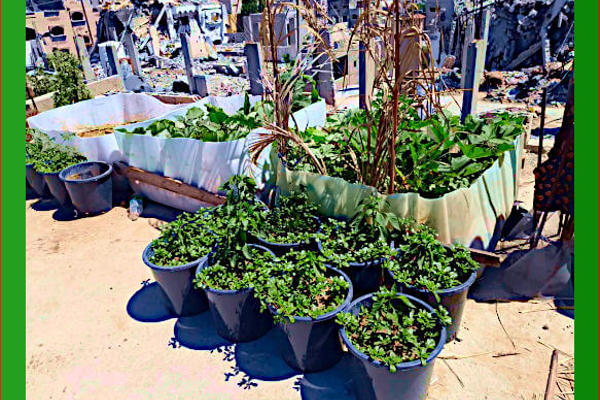 Due volte al giorno, la mattina presto e il tardo pomeriggio, io e i miei quattro figli saliamo sul tetto della nostra casa diroccata nel nord di Gaza per lavorare al nostro piccolo orto urbano. Chiedo loro di sentire il terreno tra le dita mentre spingono dentro i semi preziosi che ho trovato, di annaffiare delicatamente le verdure che germogliano e di essere grati e orgogliosi mentre raccolgono la loro portulaca, zucca e rucola.