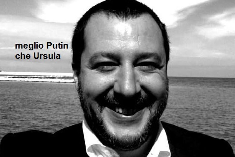 Messo alle strette dallo scandalo della trattativa per ottenere soldi da Mosca, Matteo Salvini perde anche quel po' di maschera istituzionale che gli era rimasta e sciorina tutto il repertorio da campagna elettorale contro il Movimento 5Stelle, colpevole di aver consentito l'elezione a Capo della Commissione Europea della tedesca Ursula Von Der Leyen, unendo i voti grillini a quelli di "Renzi e Berlusconi". Tutti sanno che anche lui avrebbe votato la "tedesca, ricca, e quasi-comunista" Ursula, se questa gli avesse garantito una poltrona di commissario per il suo luogotenente Giorgetti. Ma la Von Der Leyen e' appunto tedesca, si e' molto risentita delle offese di Salvini alla sua concittadina Carola, e quindi non e' stata disponibile alla trattativa. In vista delle prossime elezioni il boss leghista ha dichiarato la sua scelta di campo pro-Putin, definendolo un "grande statista" di cui ha l'onore di essere amico-maggiordomo e di cui un giorno vorrebbe emulare le gesta di pace in Siria, in Ucraina, o nella stessa Russia a favore dei diritti umani, della liberta' di stampa e di pensiero, contro la corruzione e la mafia degli oligarchi ecc ecc. Nel programma elettorale leghista, Salvini proporra' di togliere le sanzioni alla Madre-Russia per favorire l'import-export delle aziende di Savoini e soci, in modo da compensare l'isolamento dell'Italia in Europa, e garantira' un viaggio-premio a Mosca, con camera al Metropol, per tutti i suoi elettori, Di Maio escluso. Russia ed Europa, la farsa del "governo Salvini" e' finita