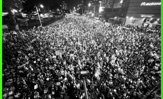 Più di 120000 persone secondo la polizia - un numero enorme per un paese come Israele - ha sfilato nel centro fino a Piazza della Democrazia, chiedendo in modo accorato e determinato di accettare il Piano proposto dal presidente USA Joe Biden per il rilascio degli ostaggi in mano ad Hamas e iniziare un percorso di uscita dalla guerra di Gaza, ponendo fine al massacro dei civili palestinesi.