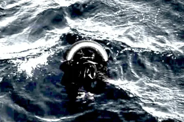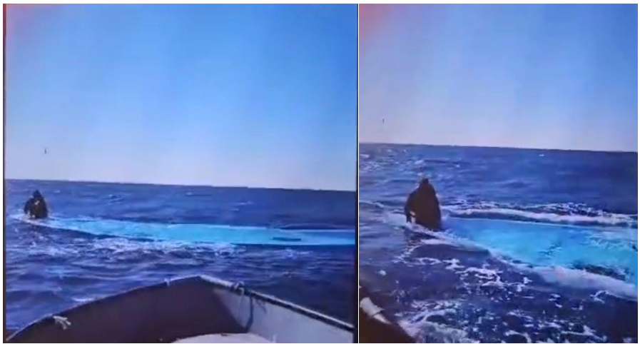 Screenshot di un video ricevuto da Alarm Phone in cui i pescatori trovano il sopravvissuto.