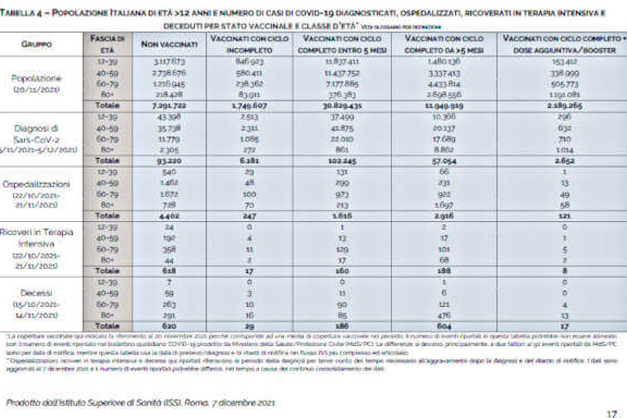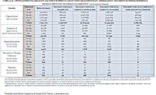 E' una fascia di popolazione che nella fotografia del ISS al 7 dicembre ammonta a quasi 12 milioni di persone, un quinto della popolazione nazionale, e presenta tassi di infezione, ricovero e mortalità da far rabbrividire. Certamente inferiori a quelli dei No-Vax, ma con valori comunque gravi e preoccupanti, destinati a crescere con il passare del tempo, ma su cui ancora tardano ad accendersi i riflettori del governo e della stampa nazionale e quindi dell'opinione pubblica.