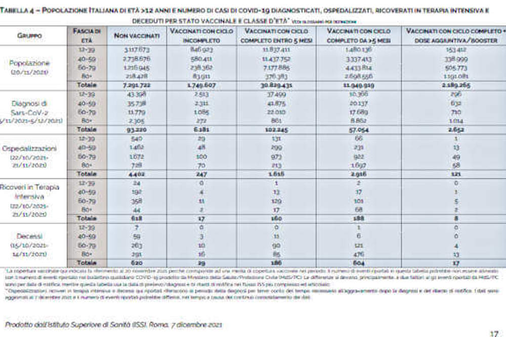 L'ultimo report dell'Istituto Superiore di Sanità, aggiornato al 7 dicembre, certifica una verità ancora nascosta dal governo e dalle istituzioni sanitarie che si occupano di Covid-19: