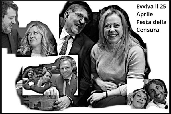 "Nel secondo anno dell'era Meloni è inammissibile che ancora si festeggi il 25 aprile oltraggiando la memoria dei fascisti. Se proprio dobbiamo sopportare ancora il 25 Aprile perché agli italiani piace fare festa, allora trasformiamola in Festa della Censura" è stato il pensiero furbo e trasparente dei dirigenti RAI-TeleMeloni.