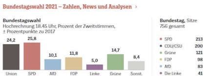 I primi exit poll indicano un testa a testa tra Scholz (SPD) e Laschet (CDU), ma a meno di sorprese il prossimo governo in Germania nascerà da un asse tra SPD e Verdi, con Olaf Scholz Cancelliere e con l'appoggio di un terzo partito.