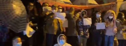 Decine di persone stazionano sui marciapiedi delle megalopoli, tenendo in mano un foglio bianco, una clamoroso modo di dire "NO A ZERO COVID, NO A XI JINPING, NO AL REGIME DEL PARTITO COMUNISTA, SI ALLA LIBERTA'"