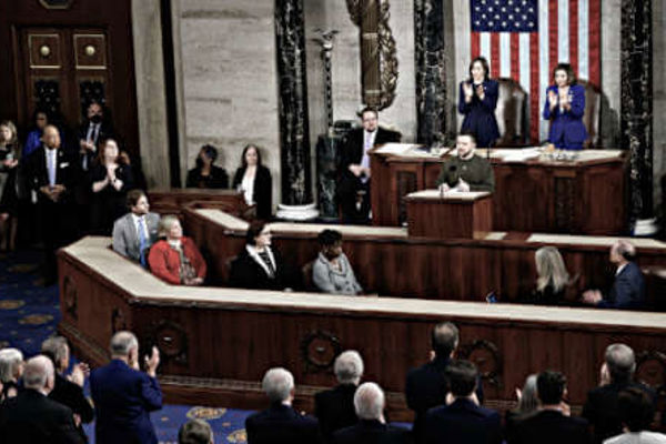 Questa è una rivisitazione approssimativa del discorso del presidente dell'Ucraina Volodymyr Zelensky al Congresso degli Stati Uniti. Le istruzioni sono rese con abbreviazioni e modificate mantenendo il significato generale. su meduza.io